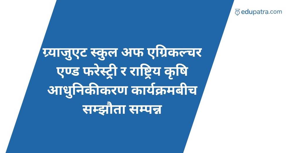 राष्ट्रिय कृषि आधुनिकीकरण कार्यक्रमका सम्भाग (जोन / सुपरजोन) हरुमा कृषि स्नातक इन्टर्न खटाइ कृषि अनुसन्धान र प्रविधि प्रसारमा परिचालन गरी कृषिको व्यवसायीकरण र आधुनिकीकरण गर्ने मुलभूत उदेश्यका साथ २६ जना विद्यार्थीहरुलाई इन्टर्न गर्ने गराउने सर्तमा ग्र्याजुएट स्कुल अफ एग्रिकल्चर एण्ड फरेस्ट्रीका तर्फबाट डीन प्रा. चन्देश्वर प्रसाद श्रीवास्तवज्यू र राष्ट्रिय कृषि आधुनिकीकरण कार्यक्रमका तर्फबाट परियोजना प्रमुख हिक्मत कुमार श्रेष्ठज्यूले सम्झौता पत्रमा हस्ताक्षर गर्नुभएको थियो ।