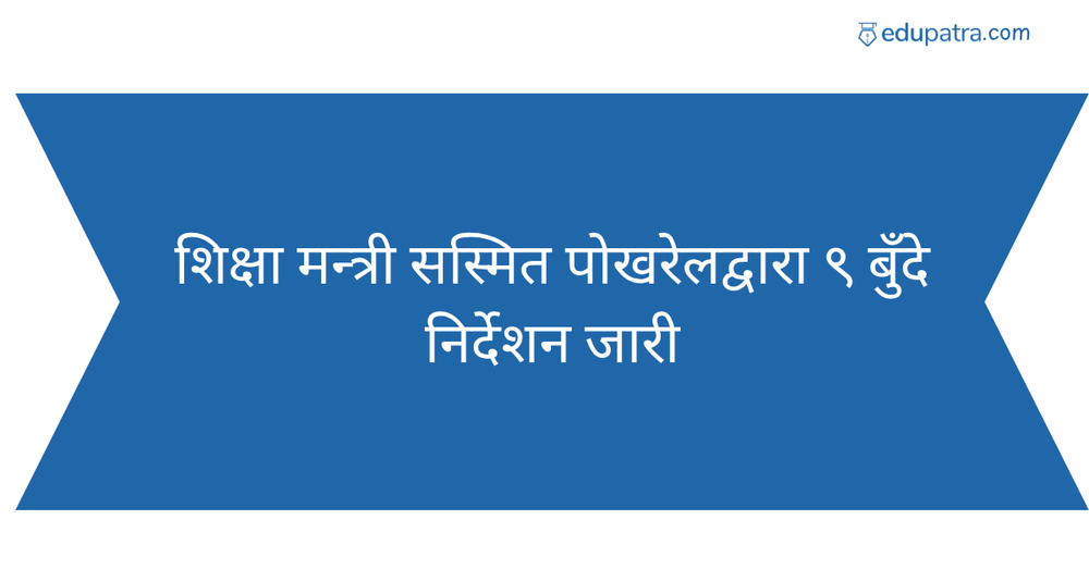 शिक्षा, विज्ञान तथा प्रविधि मन्त्री सस्मित पोखरेलले पदभार ग्रहण गरेकै दिन ९ वटा महत्वपूर्ण निर्देशन जारी गर्नुभएको छ । मन्त्री पोखरेलले १३ गते पदभार सम्हाल्दै चार उच्च शिक्षा महाशाखा र पाँच विद्यालय शिक्षा महाशाखालाई यी निर्देशन कार्यान्वयन गर्न पत्राचार गर्नुभएको थियो । सो निर्णय हालै सार्वजनिक भएको हो ।