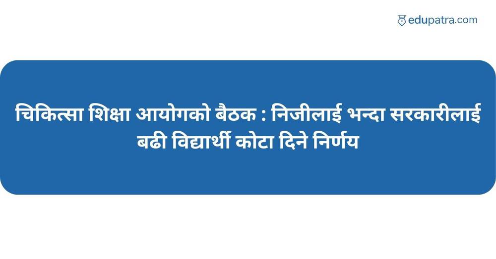चिकित्सा शिक्षा आयोगको बैठकले सरकारी र निजी क्याम्पसका लागि पोस्ट ग्राजुएट अध्ययन गर्ने विद्यार्थीको कोटा निर्धारण गरेको छ ।