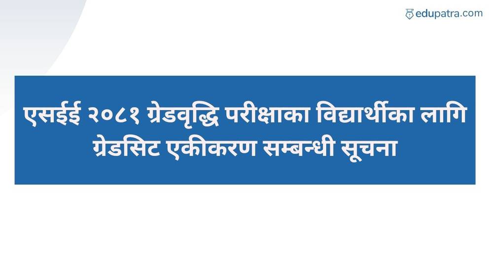 ग्रेडसिट एकीकरणका लागि विद्यार्थीहरूले २०८२ मंसिर २२ भित्र आफ्नै विद्यालयमा निवेदन दिनुपर्नेछ। विद्यालयहरूले विद्यार्थीबाट निवेदन संकलन गरी आवश्यक कागजातहरू शिक्षा विकास तथा समन्वय इकाइमा बुझाउने व्यवस्था गर्नुपर्नेछ।