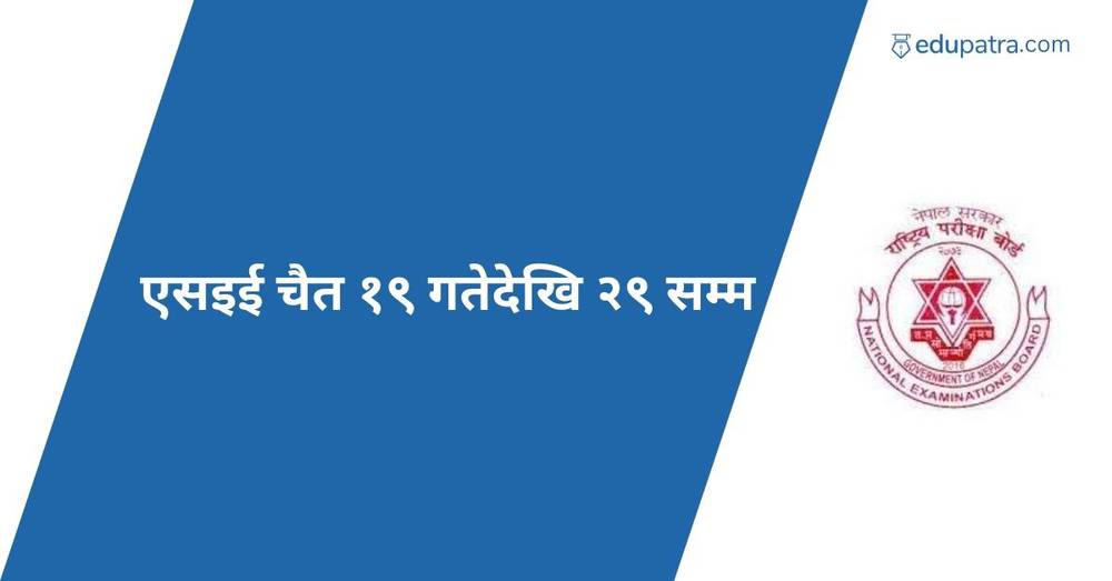 यस वर्षको माध्यमिक शिक्षा परीक्षा (एसईई) आगामी चैत १९ गतेदेखि २९ गतेसम्म सञ्चालन हुने भएको छ ।